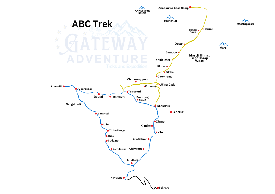 Kathmandu - Pokhara - Nayapul - Ghandruk - Chhomromg - Dovan - Macchapucchre Base Camp - Annapurna Base Camp - Bamboo - Jhinu Danda - Nayapul - Pokhara