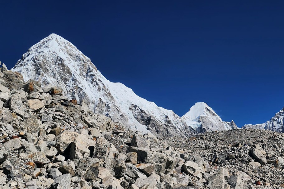 After breakfast, you set out from Lobuche along a mostly flat but rocky trail that gradually ascends through the moraine of the Khumbu Glacier. The path winds over rugged glacial debris, with spectacular views of Nuptse, Pumori, and other high peaks framing the way. You cross the Changri Glacier before arriving at Gorak Shep (5,160 m), a small settlement surrounded by some of the world’s highest mountains.